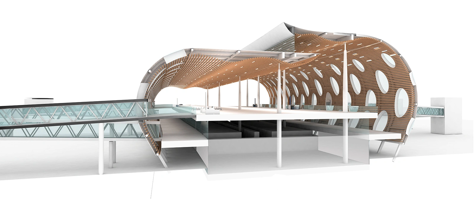 Para el edificio de la terminal, 1PAX un concepto arquitectónico contemporáneo basado en la sostenibilidad, la modularidad y la ampliación por fases. La distribución de la terminal se diseñó para garantizar un funcionamiento fluido para los pasajeros, los visitantes y el personal del aeropuerto, con una circulación clara, una señalización intuitiva y sistemas estructurales adaptables. Los principios de sostenibilidad marcaron tanto la planificación como la arquitectura, lo que permitió un uso eficiente de los recursos y un rendimiento medioambiental a largo plazo.