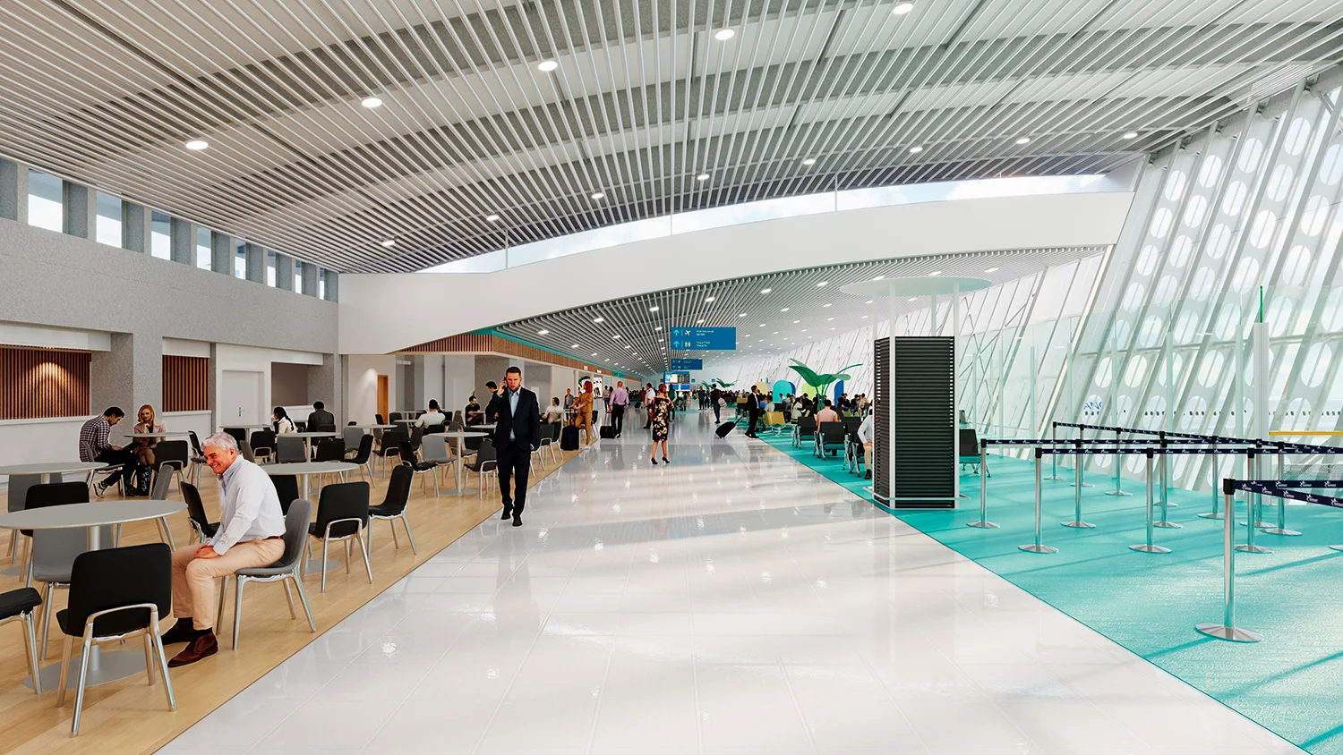 El proyecto introduce una nueva zona de operaciones que integra controles de seguridad mejorados, instalaciones de inmigración y emigración, y una zona libre de impuestos ampliada. Las nuevas salas de embarque están diseñadas para dar cabida a dos aviones de código E en las plataformas de contacto, lo que mejora significativamente la capacidad operativa y la comodidad de los pasajeros. Se añade una moderna sala de recogida de equipajes, junto con una reconfiguración completa de la zona de facturación existente y del sistema de gestión de equipajes para agilizar los flujos y mejorar la fiabilidad.