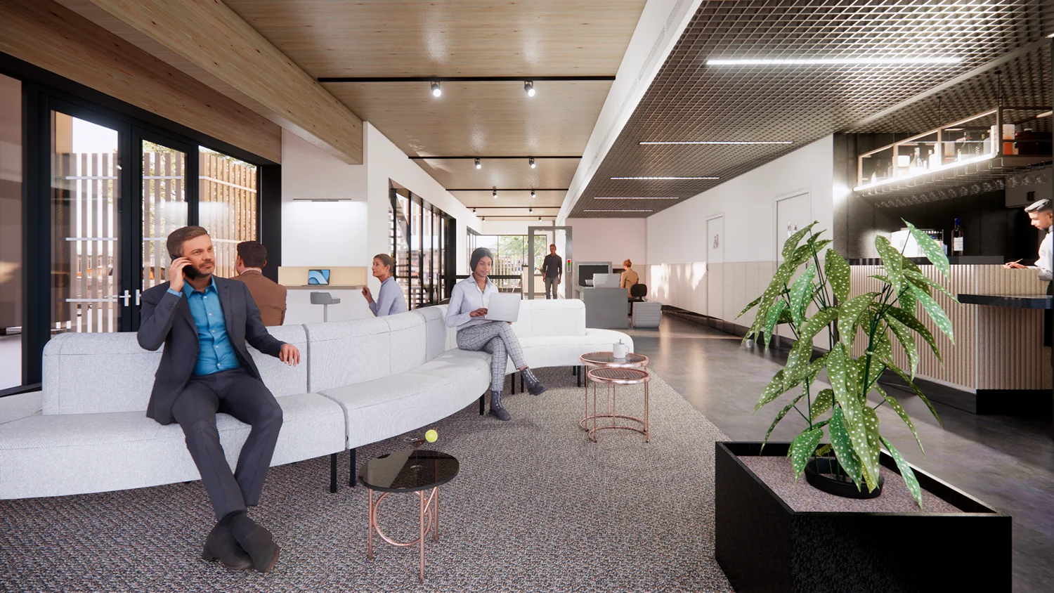 1PAX a élaboré une stratégie architecturale axée sur la clarté, la cohésion et la durabilité. Les agencements spatiaux ont été réorganisés afin d’améliorer l’efficacité opérationnelle et la circulation des passagers entre l’héliport, le vertiport et le hangar. Une grande importance a été accordée à la lumière naturelle, à la qualité des matériaux et au confort des utilisateurs. Le bois a été choisi comme matériau central du projet, utilisé de manière cohérente dans les espaces publics, les façades et le hangar lui-même. Ce choix apporte de la chaleur et une dimension humaine à un environnement par ailleurs technique, tout en créant un langage architectural unifié qui exprime la nouvelle identité de l'héliport. La conception intègre des matériaux naturels, un éclairage optimisé et des stratégies environnementales alignées sur les objectifs des certifications HQE et BREEAM.