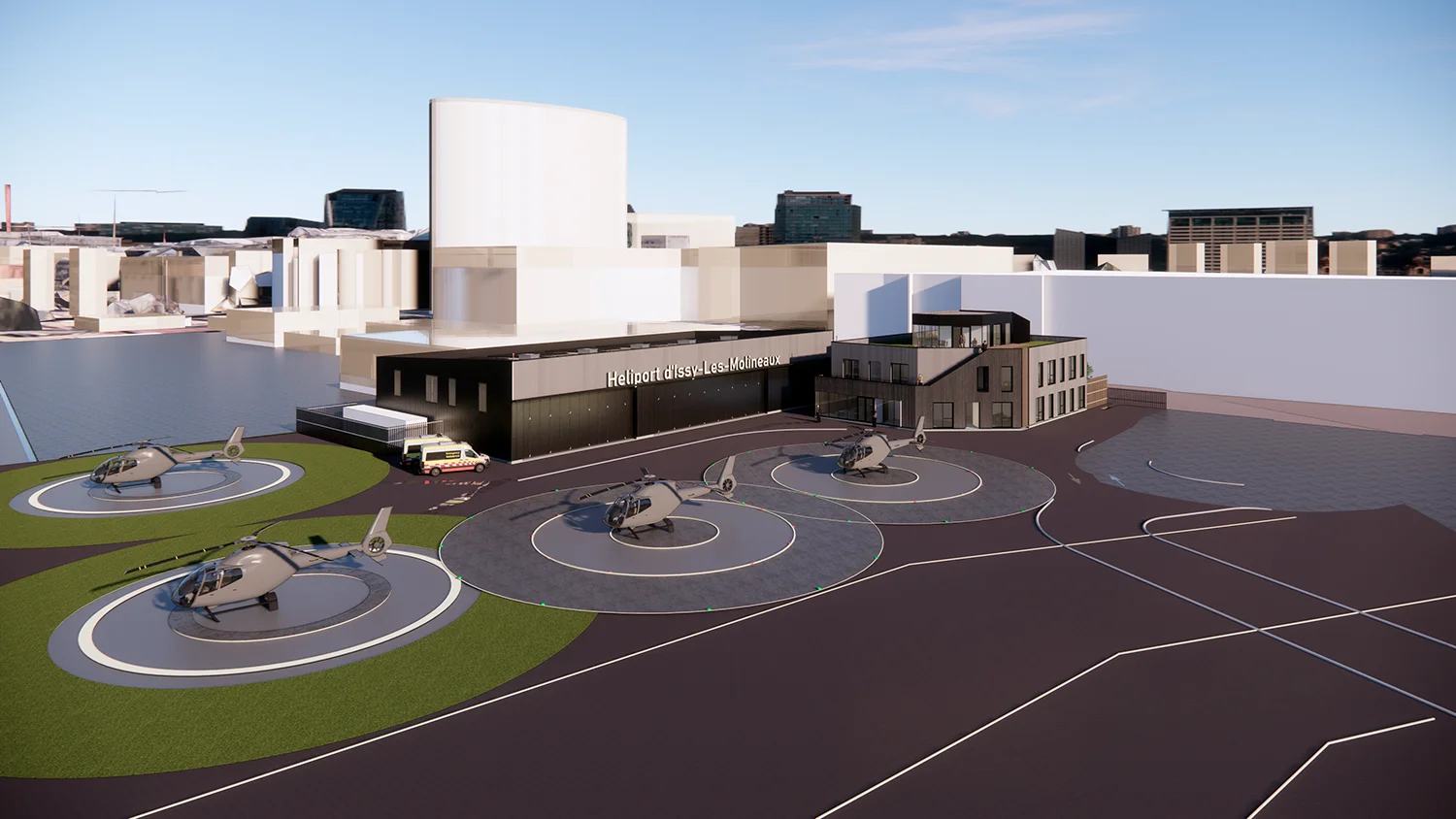 Entre 2024 et 2025, 1PAX a été mandaté par le Groupe ADP pour diriger la conception architecturale de la réorganisation et de l'extension de l'héliport de Paris à Issy-les-Moulineaux. Actuellement en cours de construction, le projet comprend un bâtiment à usage mixte intégrant des espaces intérieurs et extérieurs, combinant un héliport traditionnel, un vertiport de nouvelle génération destiné aux opérations eVTOL et un nouveau hangar pour hélicoptères. Conçu pour accueillir jusqu’à 500 000 passagers par an, le projet positionne l’héliport comme un nœud clé de l’écosystème de mobilité aérienne urbaine en pleine évolution de Paris.