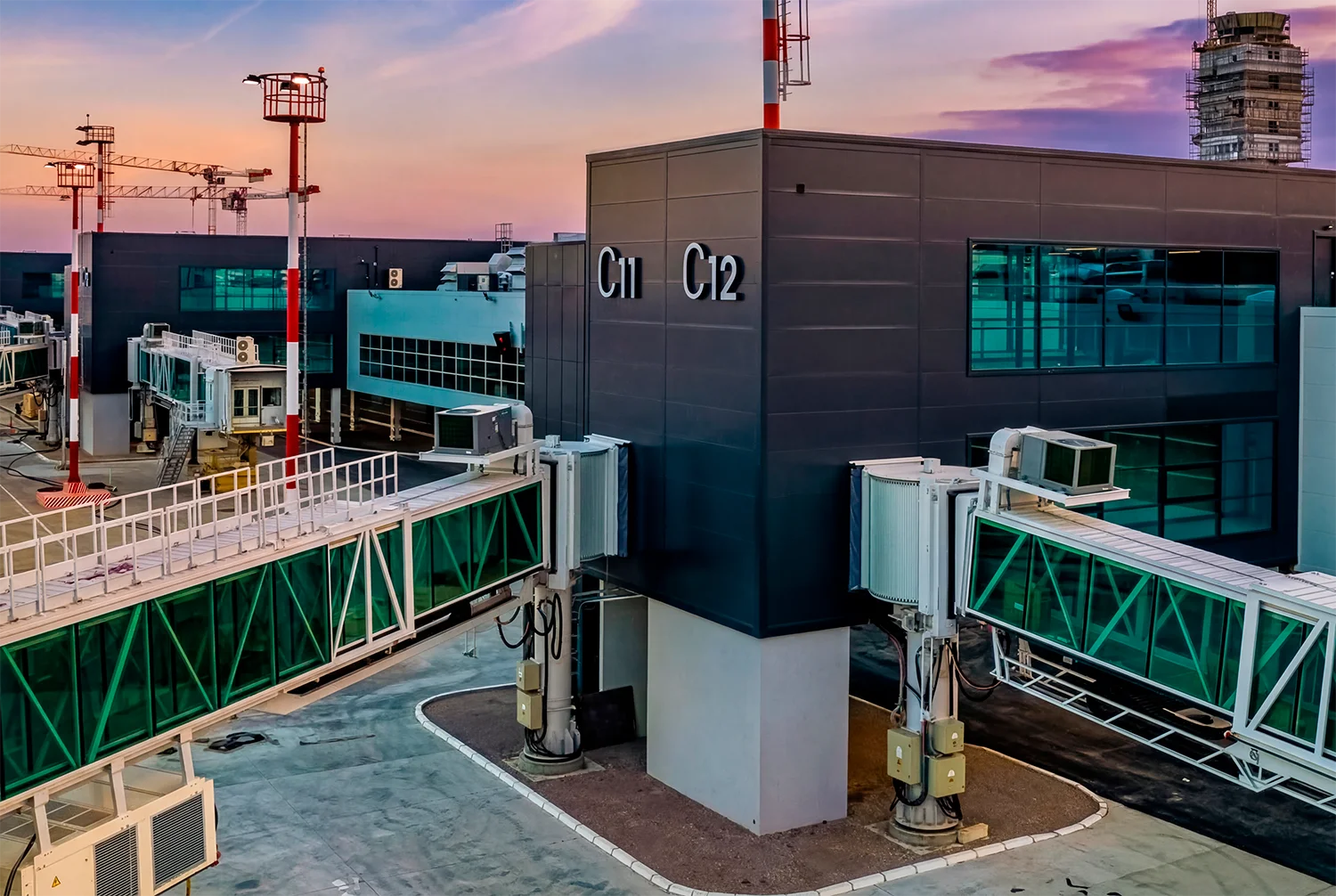 The airport required a major capacity and service upgrade while maintaining full operations throughout construction. The challenge was to phase the expansion strategically, ensuring continuity of passenger processing, improving spatial legibility, and integrating new infrastructure seamlessly with existing terminal buildings—all while meeting evolving security, safety, and operational standards.