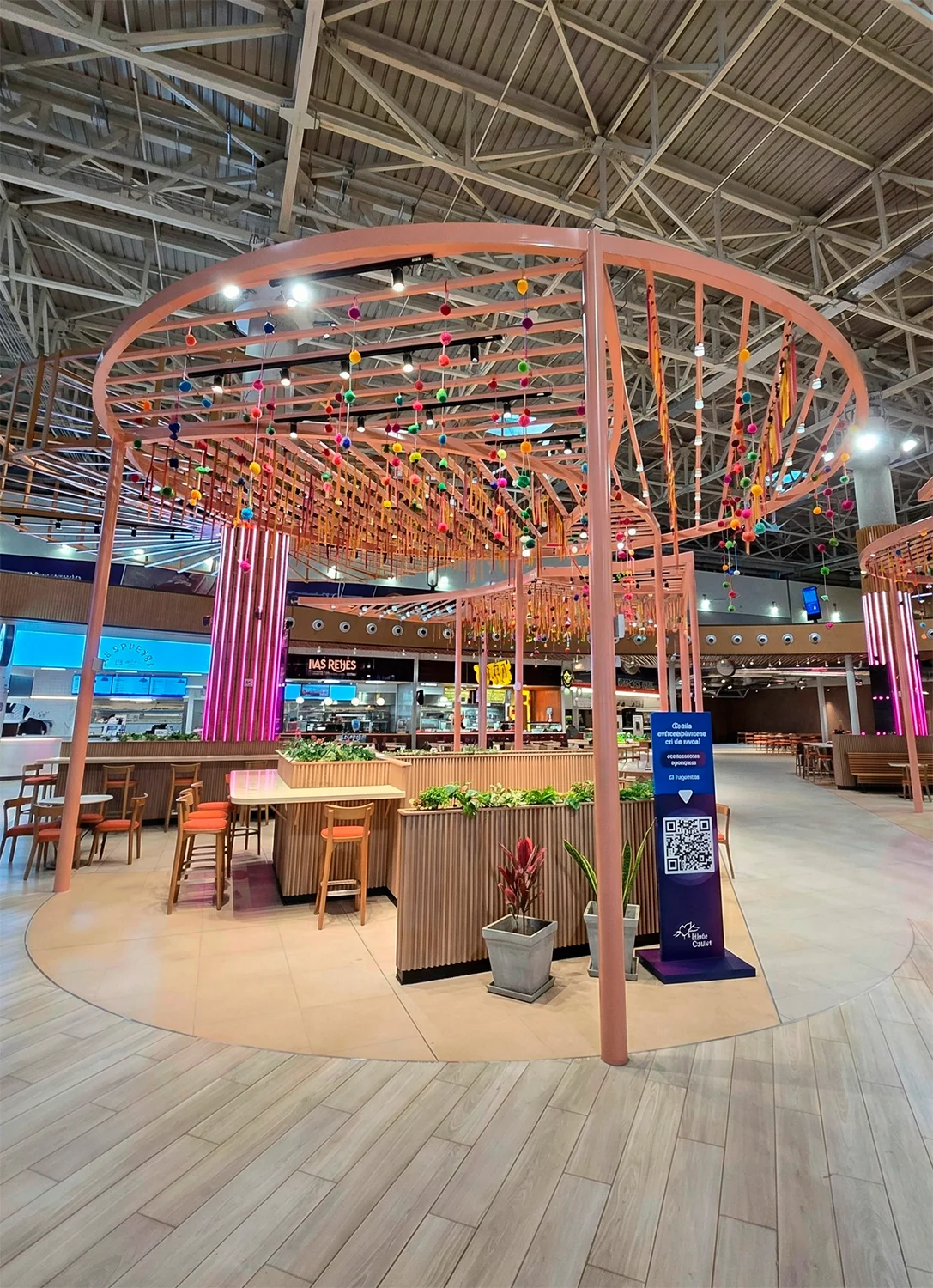 Foi concebida uma ampla área de estar para acomodar as diversas preferências dos utilizadores e os diferentes tempos de permanência, oferecendo uma variedade de tipos de assentos e ambientes. Cinco quiosques de marca — KO Asian Kitchen, La Lucha, Las Reyes, Burger Boy e Tori — são apoiados por uma área de apoio comum cuidadosamente planeada, garantindo uma logística eficiente, um bom serviço e a continuidade operacional.