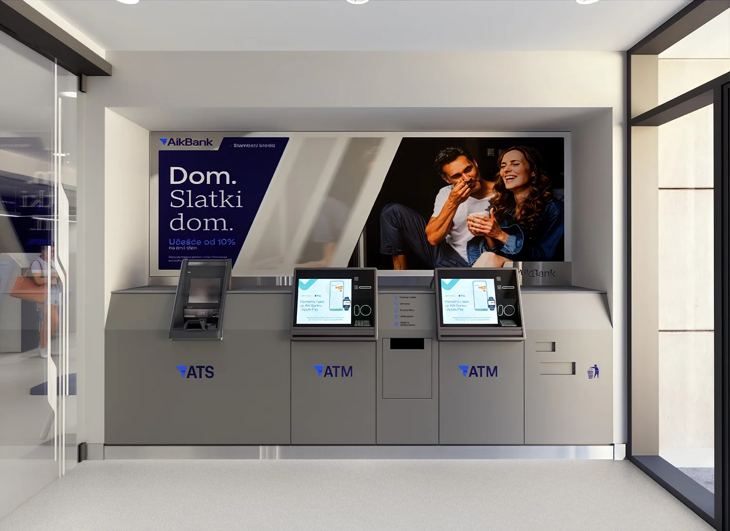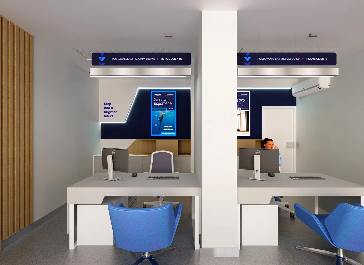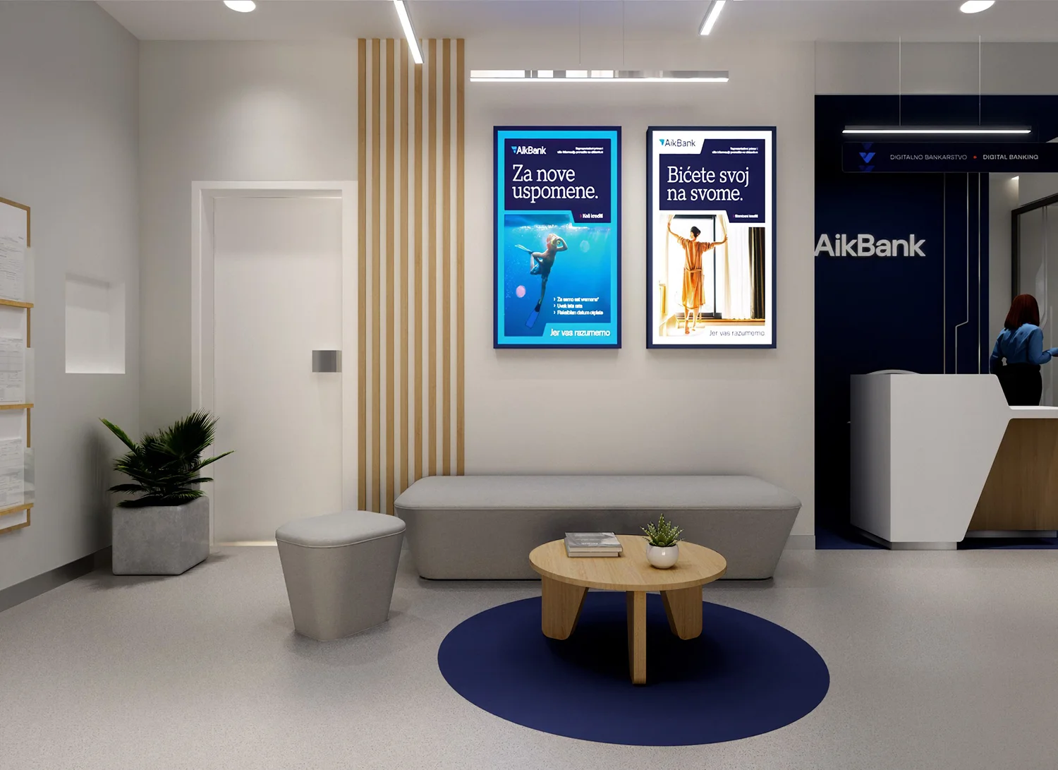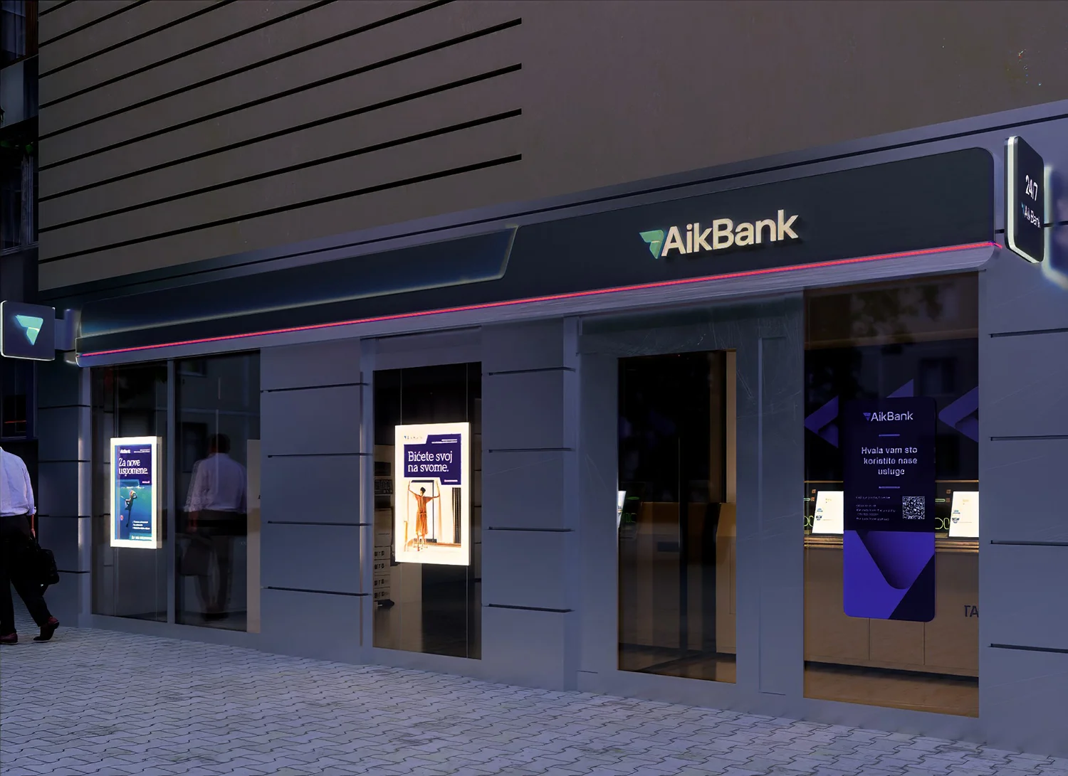 U 2025. godini, nakon velike transformacije brenda, AIK banka je naručila 1PAX da dizajnira koncept eksterijera i enterijera za celu svoju mrežu filijala i bankomata širom Srbije. Obim je obuhvatio više od 60 kancelarija širom zemlje i približno 400 bankomata, što predstavlja primarne fizičke dodirne tačke banke sa preko 300.000 klijenata. Zadatak je imao za cilj da transformiše novu viziju brenda u konzistentno, funkcionalno i prepoznatljivo prostorno iskustvo.