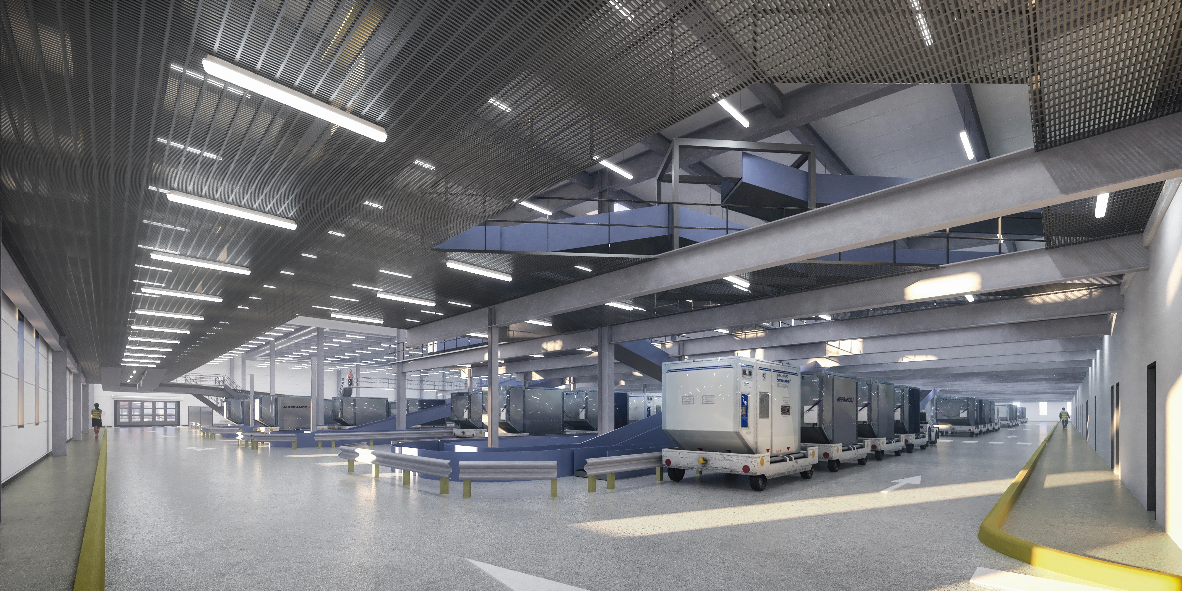 1PAX je predložio jednostavnu, rafiniranu arhitektonsku geometriju koja daje prioritet efikasnosti, konstruktivnosti i vizuelne jasnoće. Raspored je dizajniran da podrži nesmetanu instalaciju i rad sistema za sortiranje prtljaga uz održavanje jasnih vidnih linija i snažnog, prepoznatljivog prisustva u okviru aerodroma.