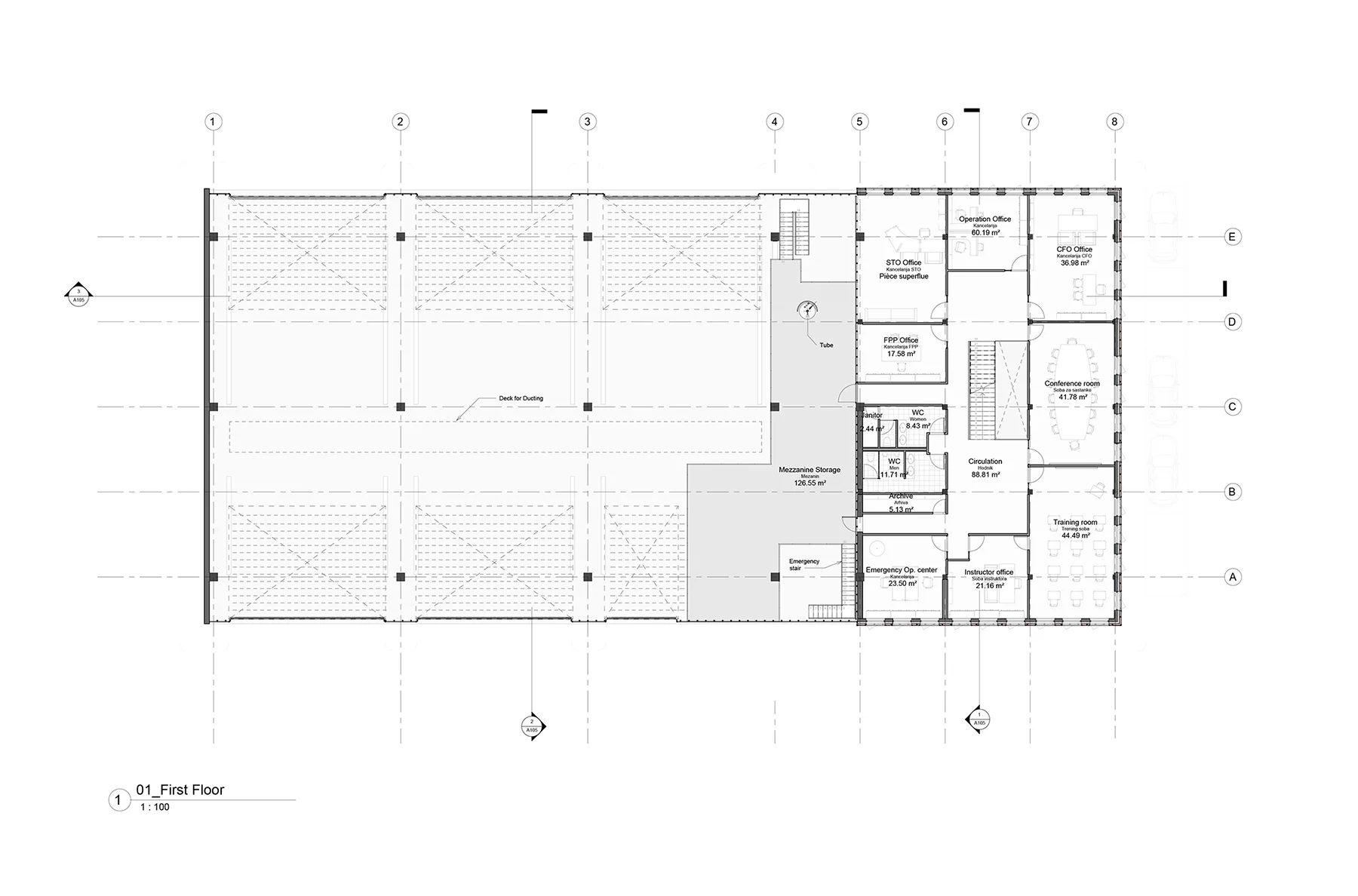 核心挑战在于设计一座建筑,既能在紧急情况下实现快速响应和无缝协调,又能明确划分具有不同环境和技术要求的功能区域。这座消防站需要在严苛的机场环境中,兼顾高效的运营效能、消防员的福祉以及长期的耐久性。