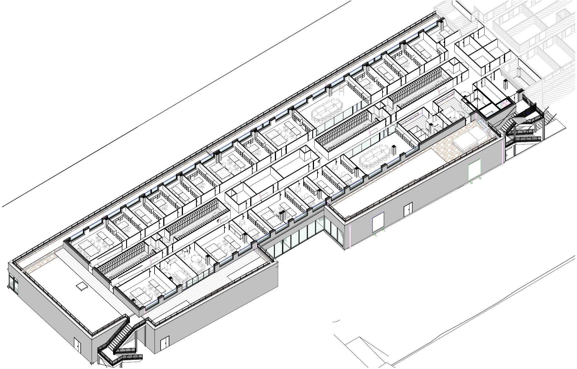1PAX 开发了一套清晰高效的建筑方案,完全契合低成本航空公司的具体运营需求。可持续性理念自项目伊始便被融入其中,并辅以详尽的生命周期评估,以及旨在获得 E+/C- 认证的高性能建筑围护结构。