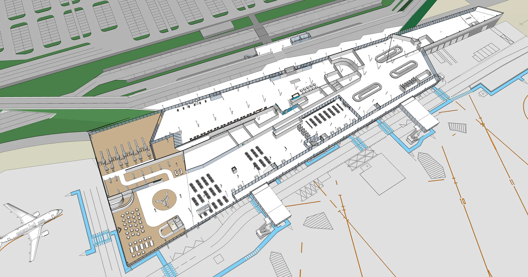 该机场面临着双重挑战:既要在现有基础设施内筹备扩容工作,又要提升旅客体验。该项目不仅需要提高服务质量、优化旅客流线并整合新技术,同时还必须满足日益增长的环保要求,并加强与周边地区的交通连接。