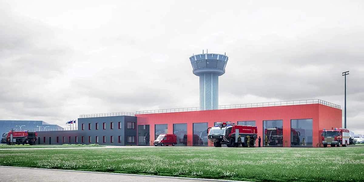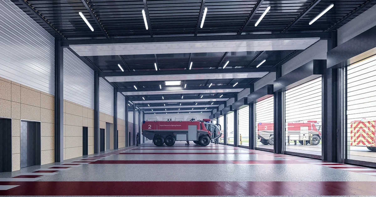 该消防站不仅需要具备高度的功能性、坚固耐用且能适应未来的发展需求,同时还要在机场景观中清晰地彰显其功能定位。面临的挑战在于,如何将从应急响应到培训及行政管理的复杂运营需求,转化为清晰、高效且一目了然的建筑布局。
