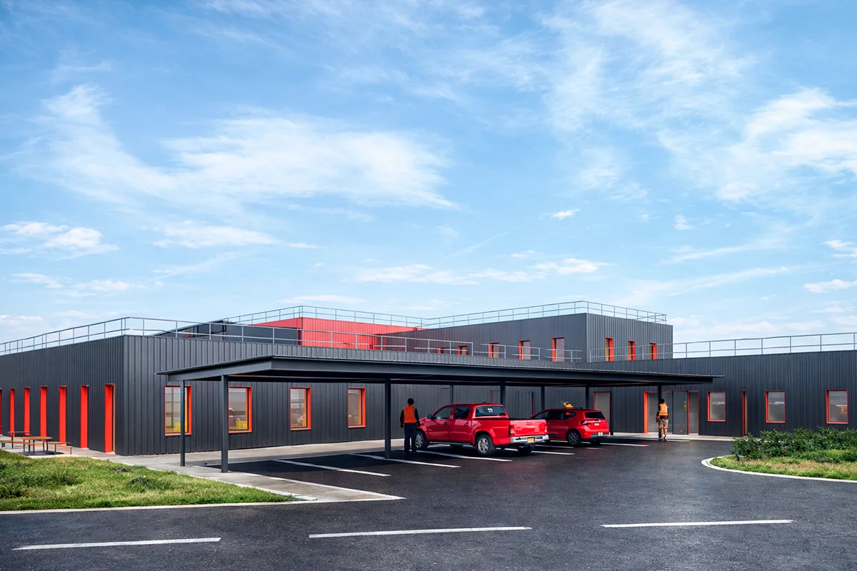 1PAX 设计了一组简洁、轮廓分明的体量组合,每个体量都直接体现了其在建筑功能中的作用。消防站被设计为建筑的核心,用于停放应急车辆并开展快速部署行动。通过采用明亮且醒目的色彩,突出了这一核心体量,确保其作为机场关键设施能够被立即识别。